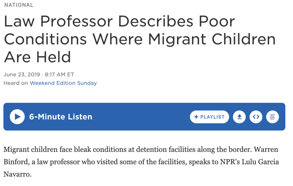 Lulu Garcia Navarro, Law Professor Describes Poor Conditions Where Migrant Children Are Held, NPR Weekend Edition (June 23, 2019).